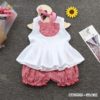 Đặt mua Set áo linen bèo túi trước quần bí caro dễ thương cho bé gái